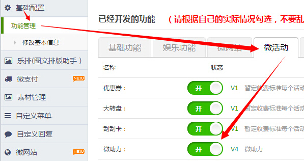 第二步:刷新网页,在网站左侧的微活动下找到微助力功能
